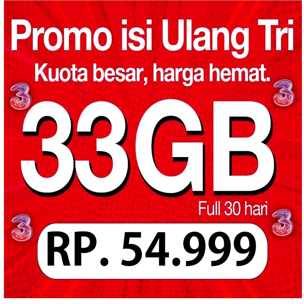 Kuota 33gb data tri three 3 50gb 30gb 20gb 15gb 10gb injek nasional reguler 24 jam termurah.
